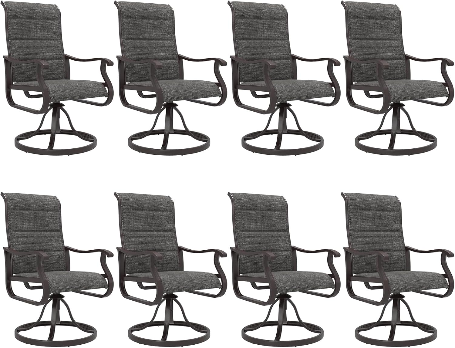 Amopatio Padded Patio Swivel Chairs Set of 8, Outdoor Dining Chairs with Ultra Soft Textilene High Back Seat & Metal Rocker Frame, for Backyard Deck Lawn Garden, Dark Grey