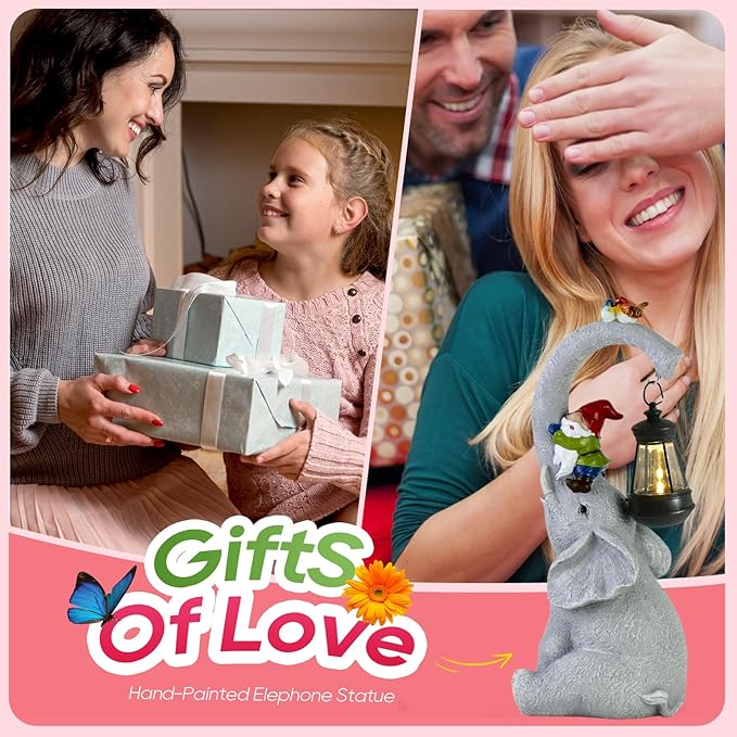- 【Gardening Gifts Option】"Bestow fortune and protection upon your dear ones with this elephant and gnome sculpture decor .It's a heartwarming gift for Mom, Grandma and Friends, especially to a garden lover as a bithday gifts for women ,gifts for mom from daughter, gifts for grandma ,mothers day gifts,housewarming gifts for new house,stress relief gifts for women
