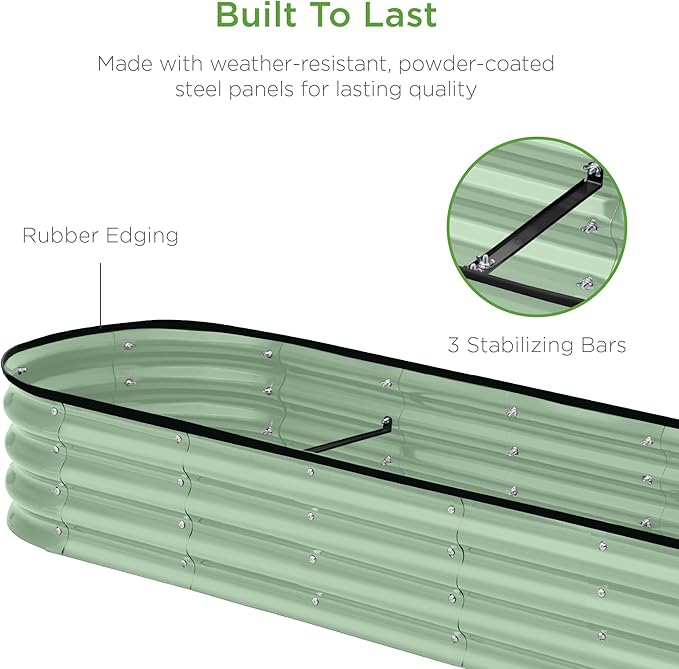 Best Choice Products 8x2x1ft Outdoor Metal Raised Garden Bed, Oval Deep Root Planter Box for Vegetables, Flowers, Herbs, and Succulents w/ 108 Gallon Capacity - Sage Green