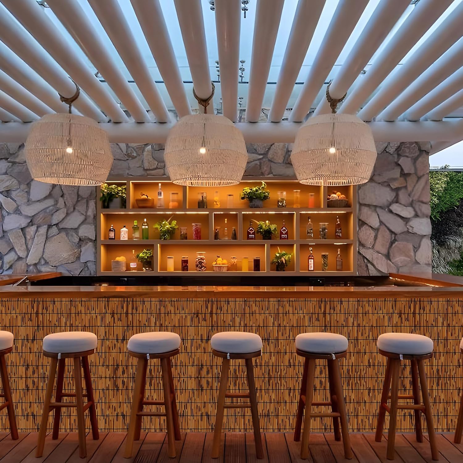 - 【Widely Used】Bamboo privacy divider outdoor can be used in gardens, courtyards, balconies or terraces, swimming pools and other places to protect privacy; they can also be used for atmosphere decoration in hotels, apartments, villas, exhibition halls and other places.