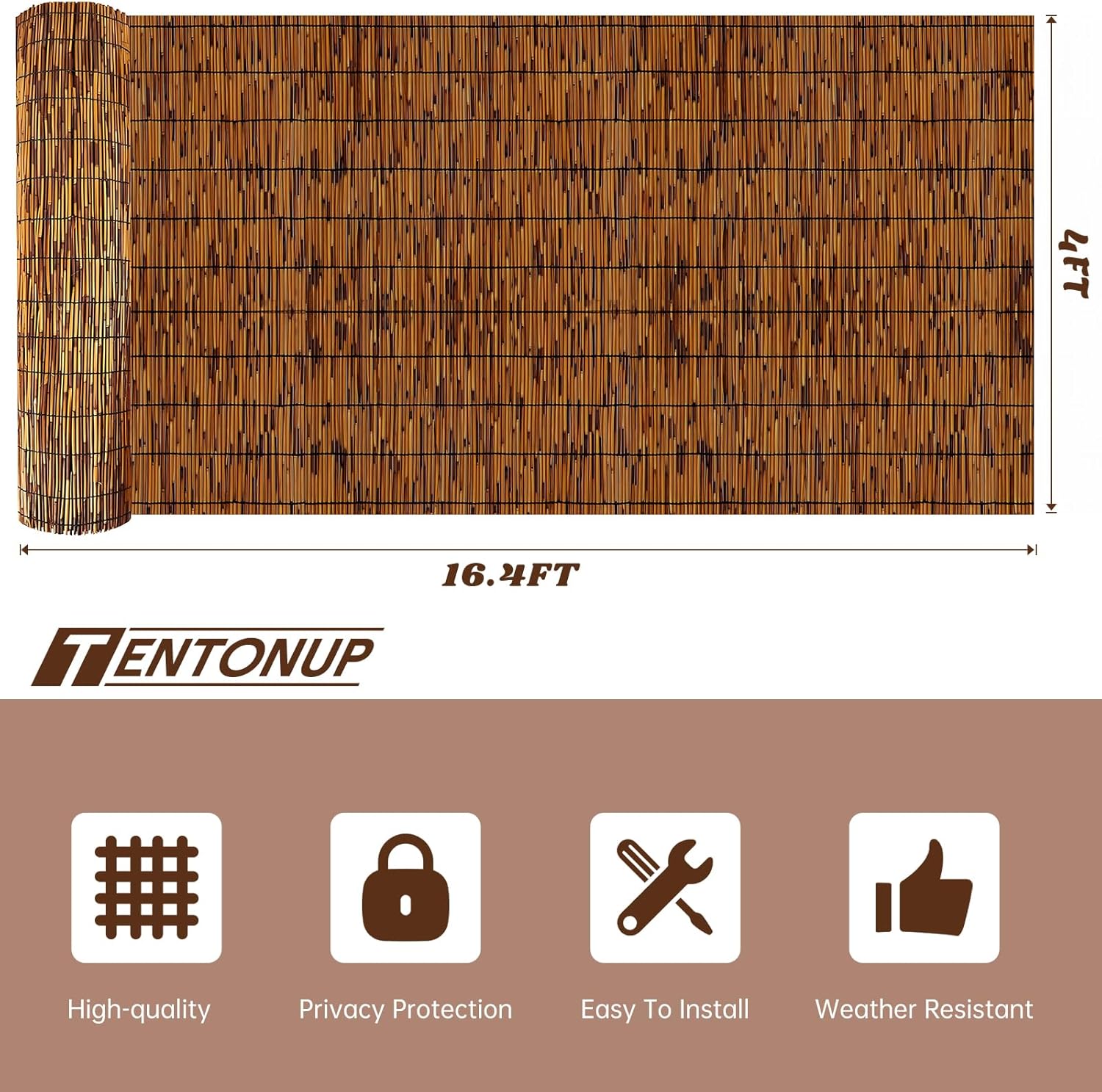 - 【Reminders】Package includes 1 x Reed Fence(Size approx 4FT x 16.4FT) and 100 x Zip ties. (Note 1.Due to manual processing and measurement, there may be a deviation of 1-3 cm in the product size.Note 2. There may be slight burrs on the surface of the natural reed fence. Please wear gloves when installing. Note 3. The spots on the bamboo screen are natural)
