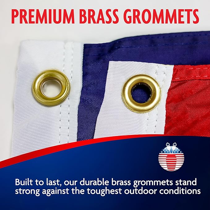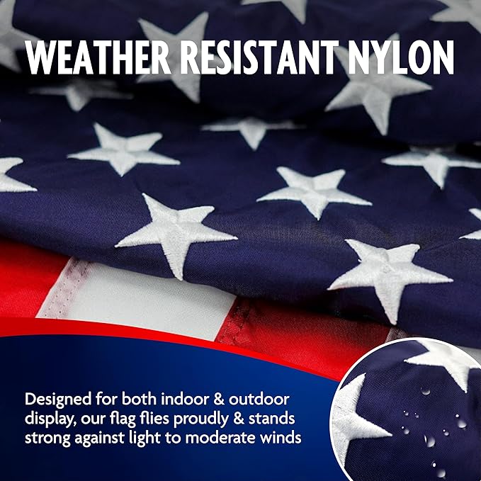 - BUILT TO LAST NYLON - Our American flags embody the essence of American pride. With brass grommets, strong nylon fibers, sourced, dyed, and made in the USA, this flag is built tough