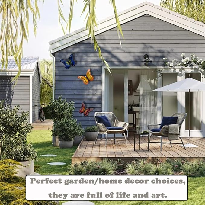 - UNIQUE DESIGN: We set double layer wings for the metal butterfly, not only the color is more eye-catching, but also increase the fun of the decoration process. You can adjust the curvature of the butterflies' wings according to your own preferences to make them more vivid in the garden