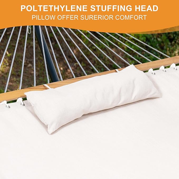 Lazy Daze 12 FT Sunbrella Fabric Hammock not Fading with Spreader Bars and Free Pillow Fits for Two Persons, All Weather and Fade Resistant for Patio Yard, 450 lbs Weight Capacity,Cast Pumice