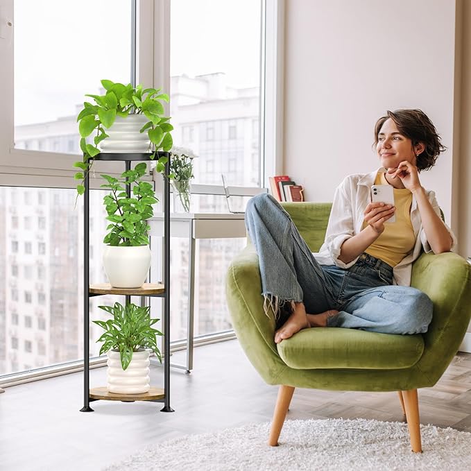 - Stable & High Load-bearing: The plant shelf indoor is designed with an upright structure using a combination of iron and wood in a modern and fashionable style that is suitable for a variety of interiors. The original triangular structure of the indoor plant stands for multiple plants has a strong load-bearing capacity, making it ideal for heavy potted plants
