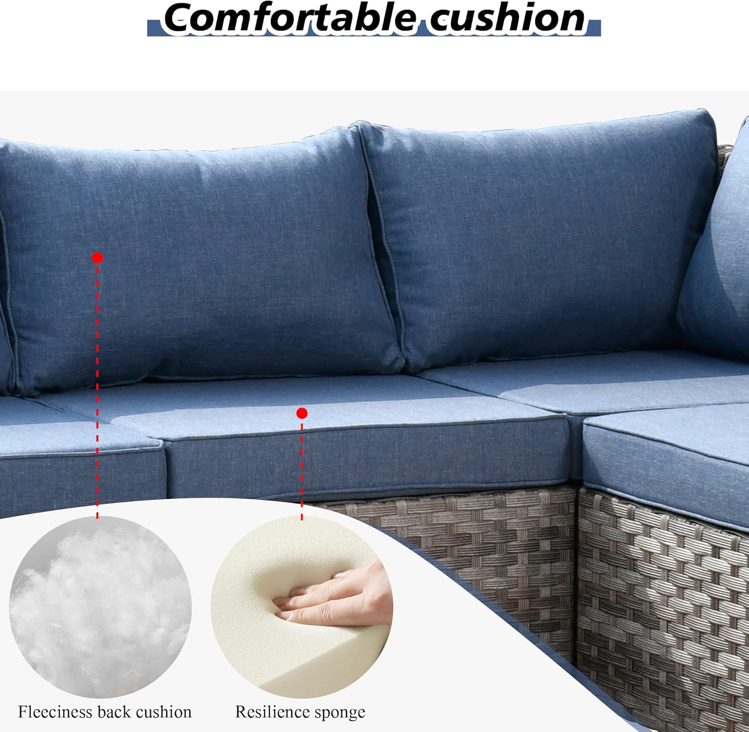 - Weather Resistance: PE strengthen wicker UV treated for long lasting. Cushions with yarn dyed woven cover features with UV-resistance, water drops/spilt resistance and good ventilation, resists water drops, coffee spilt. Unlike cheaply made thin print fabric, yarn dyed woven fabric got beautiful texture