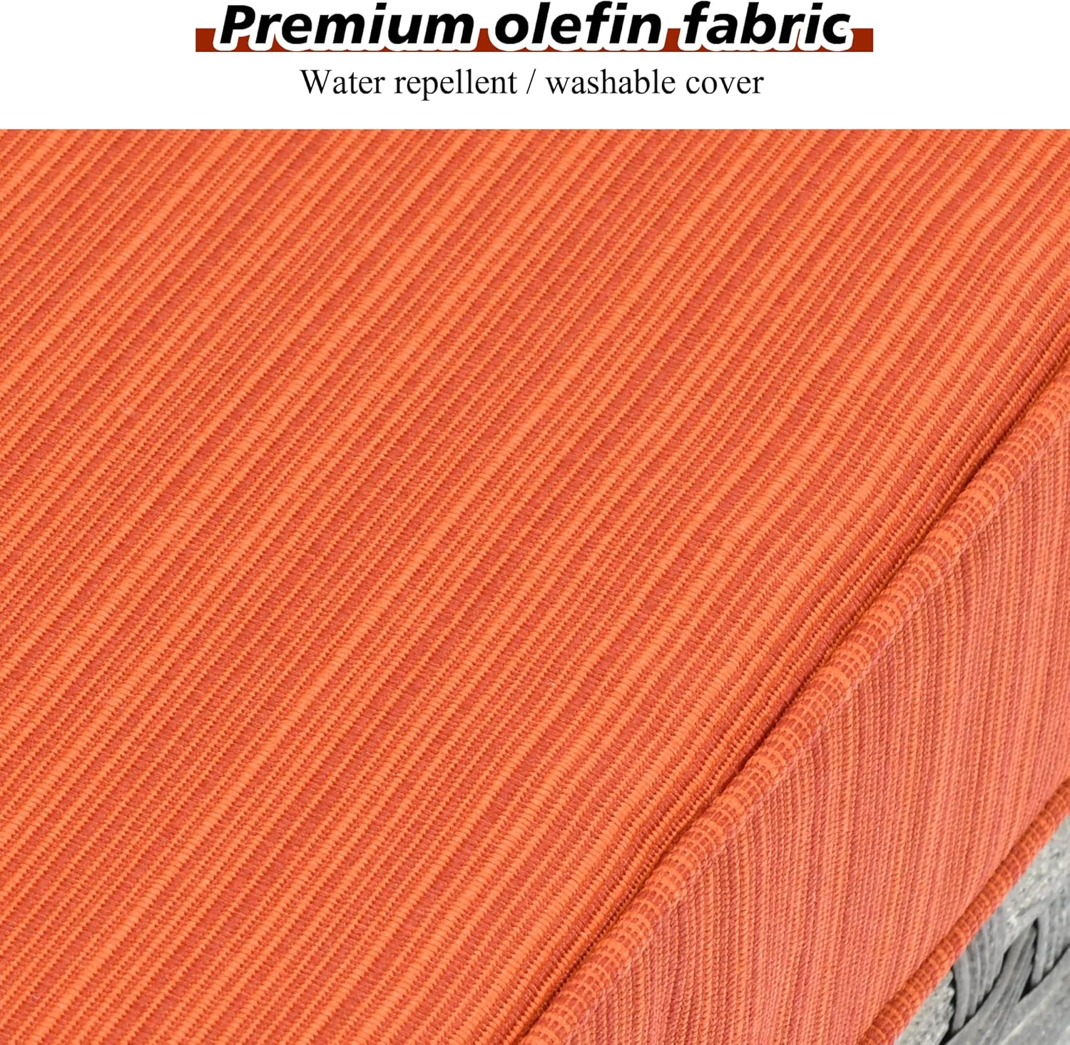 - Weather Resistance: PE strengthen wicker UV treated for long lasting. Cushions with yarn dyed woven cover features with UV-resistance, water drops/spilt resistance and good ventilation, resists water drops, coffee spilt. Unlike cheaply made thin print fabric, yarn dyed woven fabric got beautiful texture