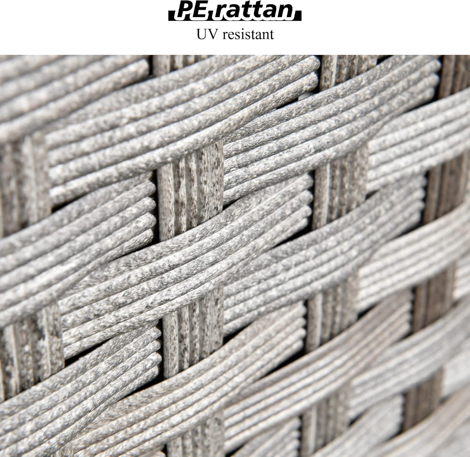 - Weather Resistance: PE strengthen wicker UV treated for long lasting. Cushions with yarn dyed woven cover features with UV-resistance, water drops/spilt resistance and good ventilation, resists water drops, coffee spilt. Unlike cheaply made thin print fabric, yarn dyed woven fabric got beautiful texture