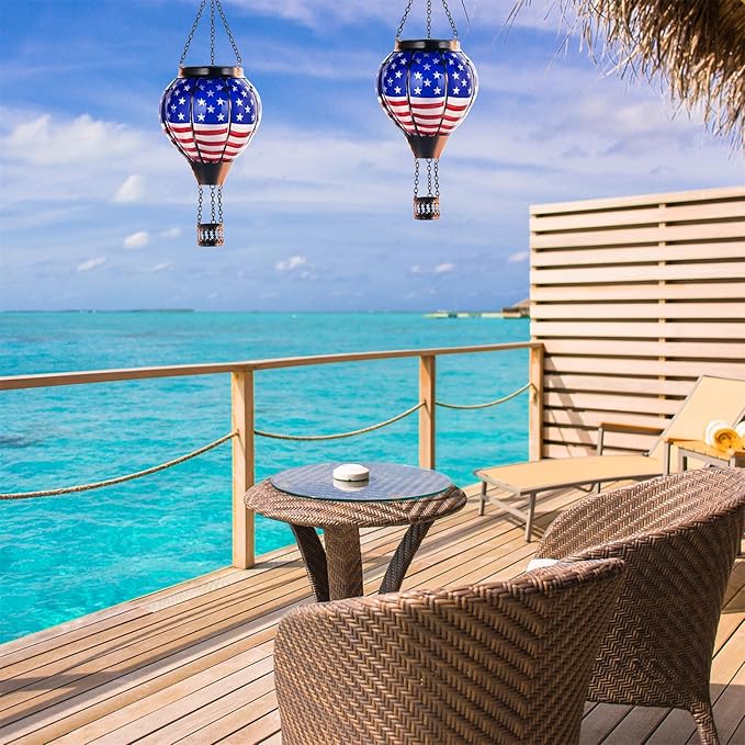 Hot Air Balloon Solar Lantern Outdoor - Flame Hanging Solar Light Waterproof Lanterns for Patio Garden Yard Farmhouse Decor, Great Gift(Flag)
