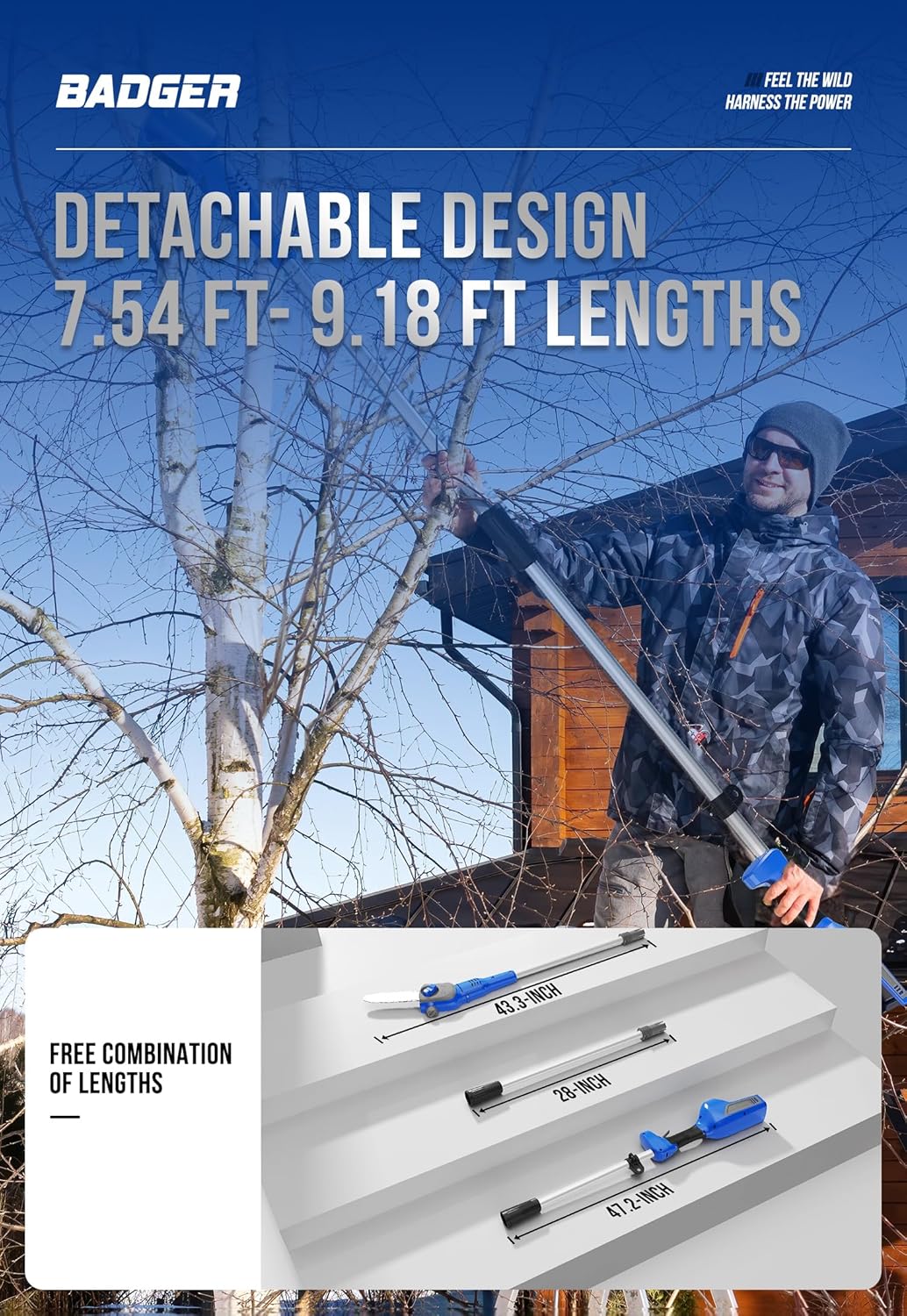 WILD BADGER POWER Pole Saw Cordless 40V 8'' Electric 2.0Ah with Detachable Pole, 2Ah Battery and Charger included