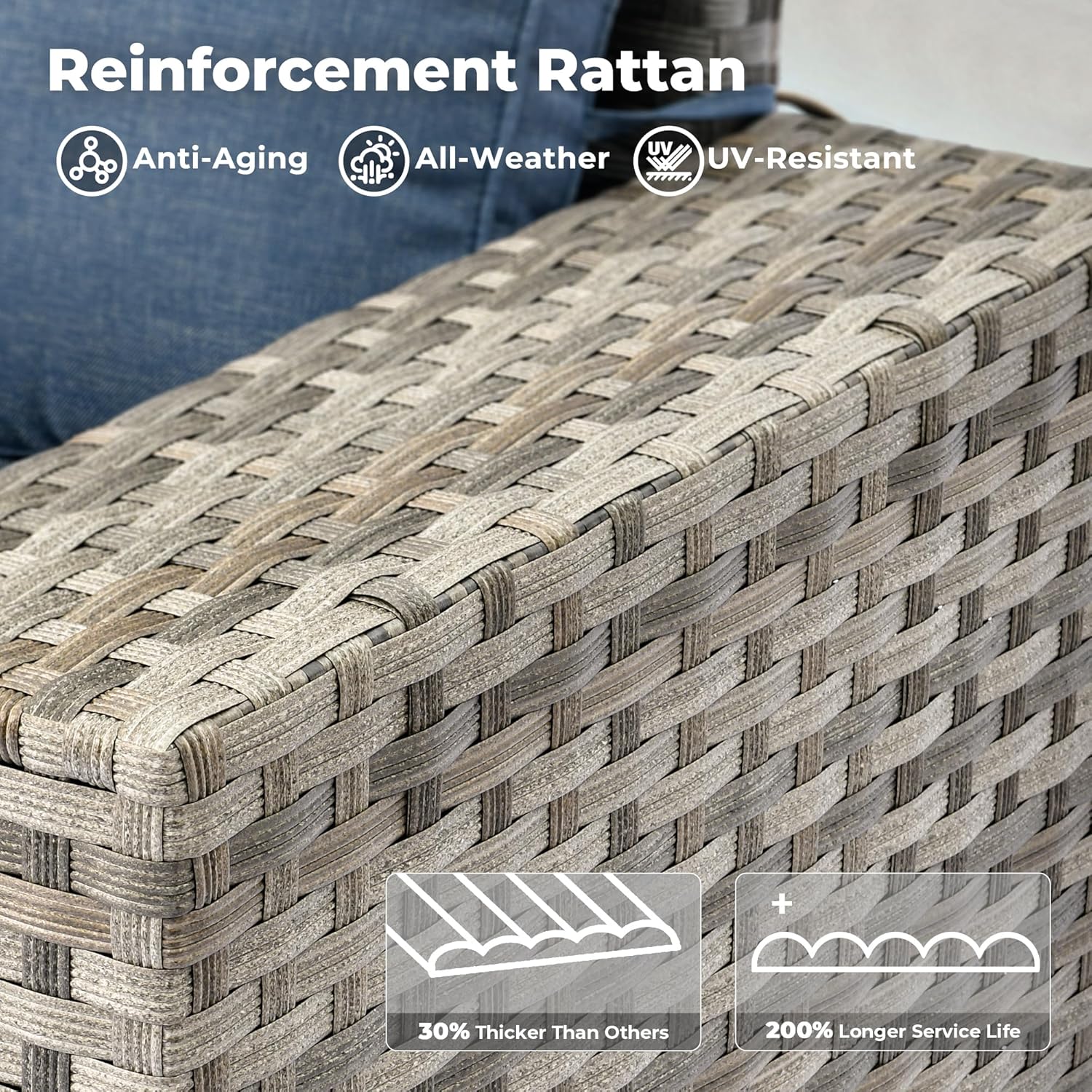 - All-weather Wicker Rattan: Our outdoor sofa sets have very durable PE wicker rattan for all-weather use and a natural texture with good coloring. The high-quality patio seating made of powder coated steel frame ensures good strength and stability