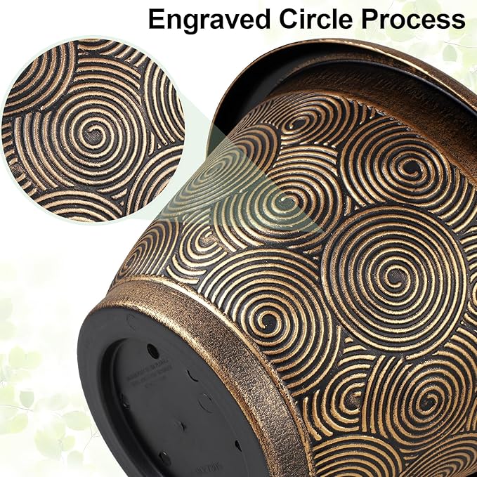 - 【Modern Circle Pattern】14 inch planter pots designed with 3D circle pattern add a lively and modern feeling, perfect for plants and flowers indoor outdoor, brings out a modern stylish visual representation for any home/office decor without any sense of violation.
