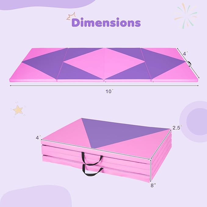 - [Convenient Portability & Storage]: Whether you’re heading to the gym, park, or practicing at home, the folding mat with convenient handles ensures seamless transport. It is compact and lightweight, providing a generous 10’ x 4’ space when unfolds!