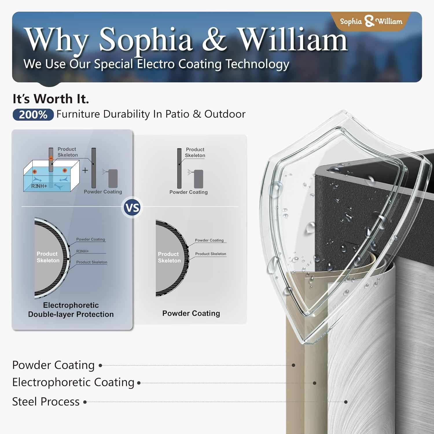 - 【Built to Last】Crafted for lasting enjoyment, this patio set boasts a sturdy construction and weatherresistant ecoating technology that stand up to the elements. Easy to clean and maintain