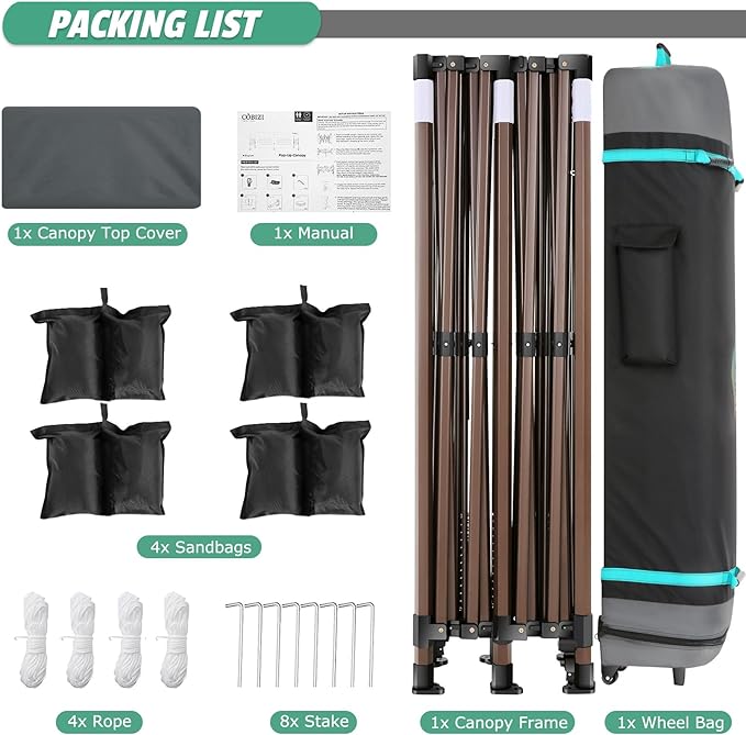 - 【Included Accessories】 1x Commercial Grade 10x20 Pop Up Tent Frame, 1x Top Cover, 6x PU Coated Panels (4 x Sidewalls with Windows and 2x Sidewalls with Zippers), 4x 420D Oxford Fabric PVC Coated Sandbags, 8 x Ground Pegs, 4x Windproof Ropes, 1x Rolling Bags, 1x Manual. Please feel free to contact us, we will give you the best help. Choosing us means choosing a comfortable life.