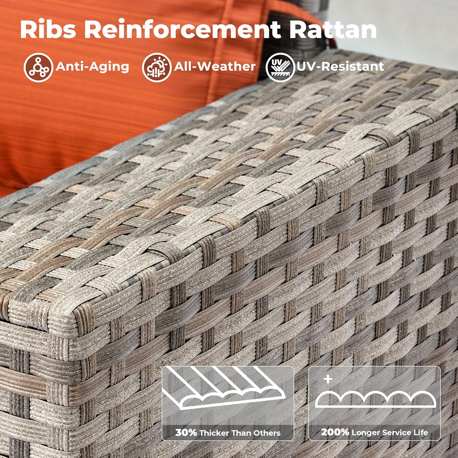 - All-weather Wicker Rattan: Our outdoor sofa sets have very durable wicker rattan for all-weather use and a natural texture with good coloring. The high-quality patio seating made of powder coated steel frame ensures good strength and stability.