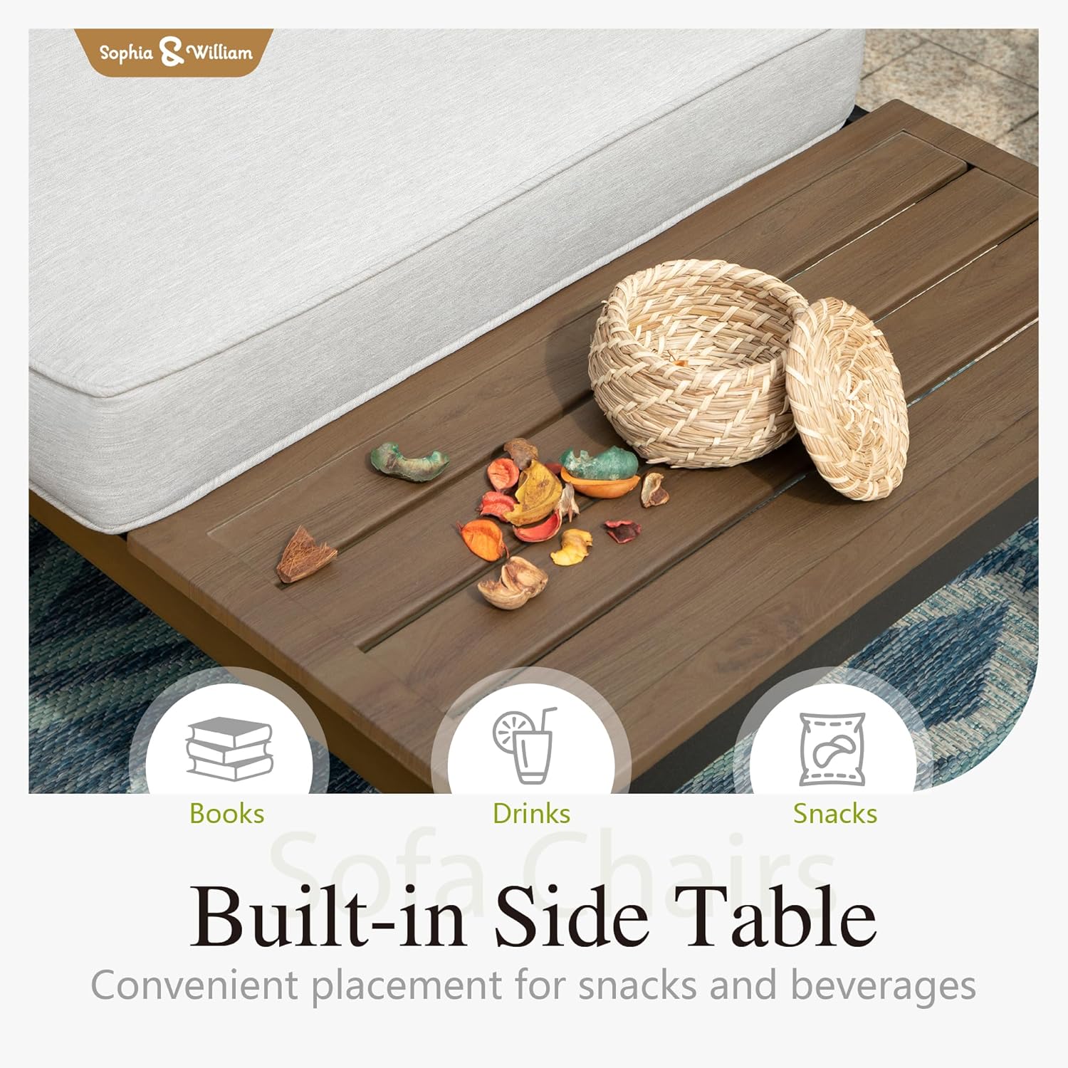 Sophia & William Outdoor Patio Furniture Set, Metal Sectional Sofa Set Patio Conversation Set with Cushions-2 x Single Sofa with Side Table
