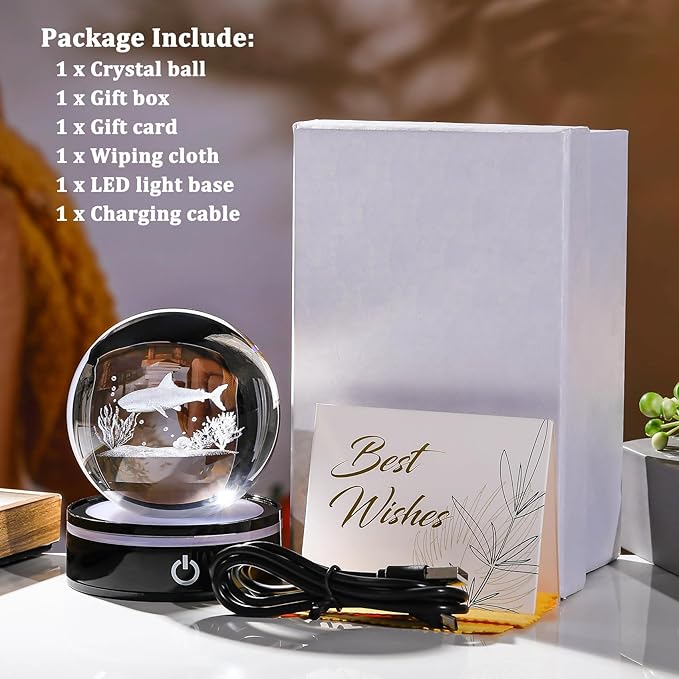 - 3D Shark Crystal Ball: The shark figurine is made of high-quality k9 crystal making the crystal ball more transparent and glossier, 3d laser engraving technology design creates an exquisite shark image inside. Even after a lifetime of use, crystals never lose their original shine