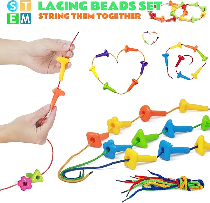 - Educational preschool toys: Exciting stacking toys,Great school supplies, essential for teachers, to develop children's creative imagination, design skills, and scientific construction thinking. Good threading toys, a counting game that can be strung together