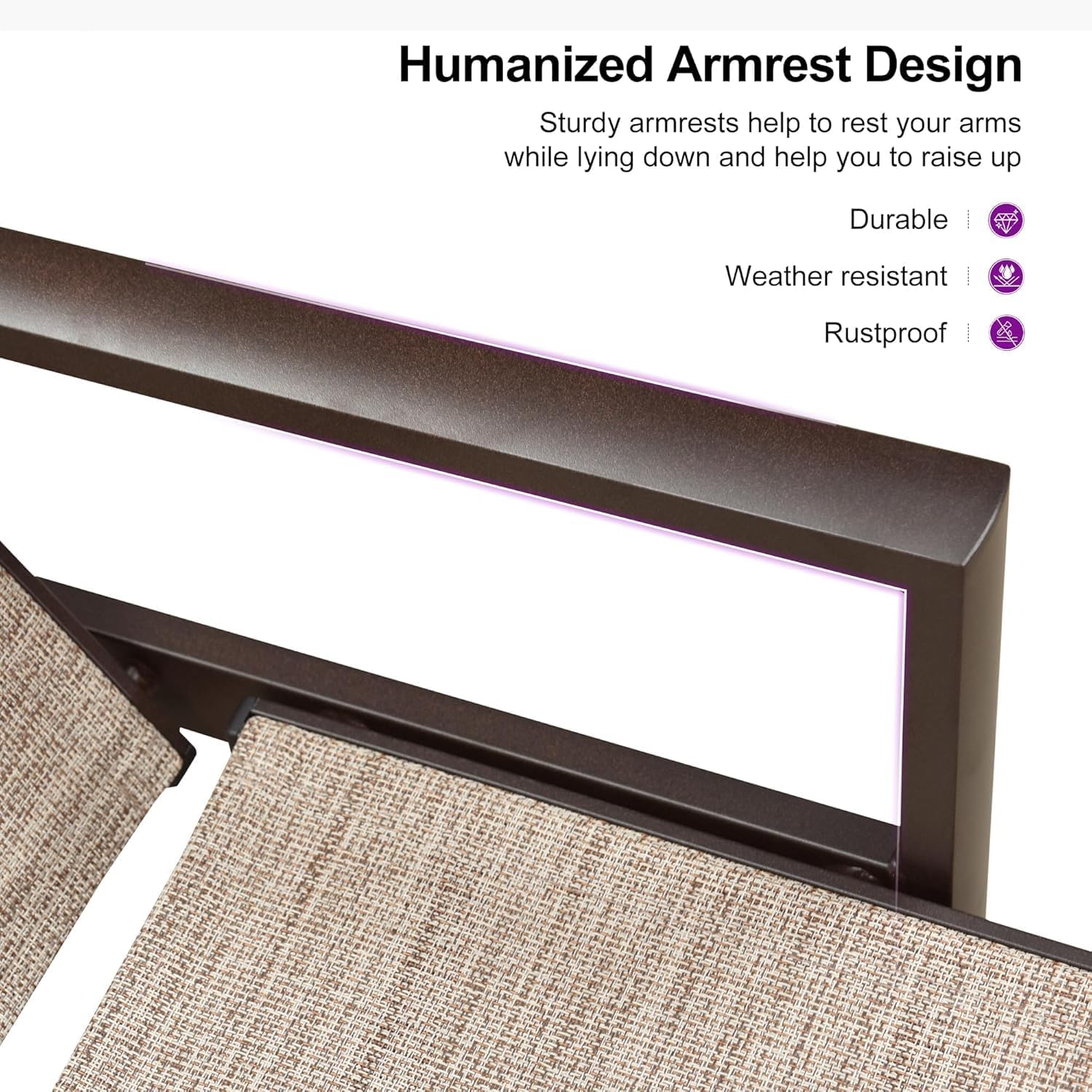 - HUMANIZED ARMREST: Feature two 20.09 "height humanized armrest, the lounge chairs for outside can relax your arms while lying down without pressure and get out of easily.