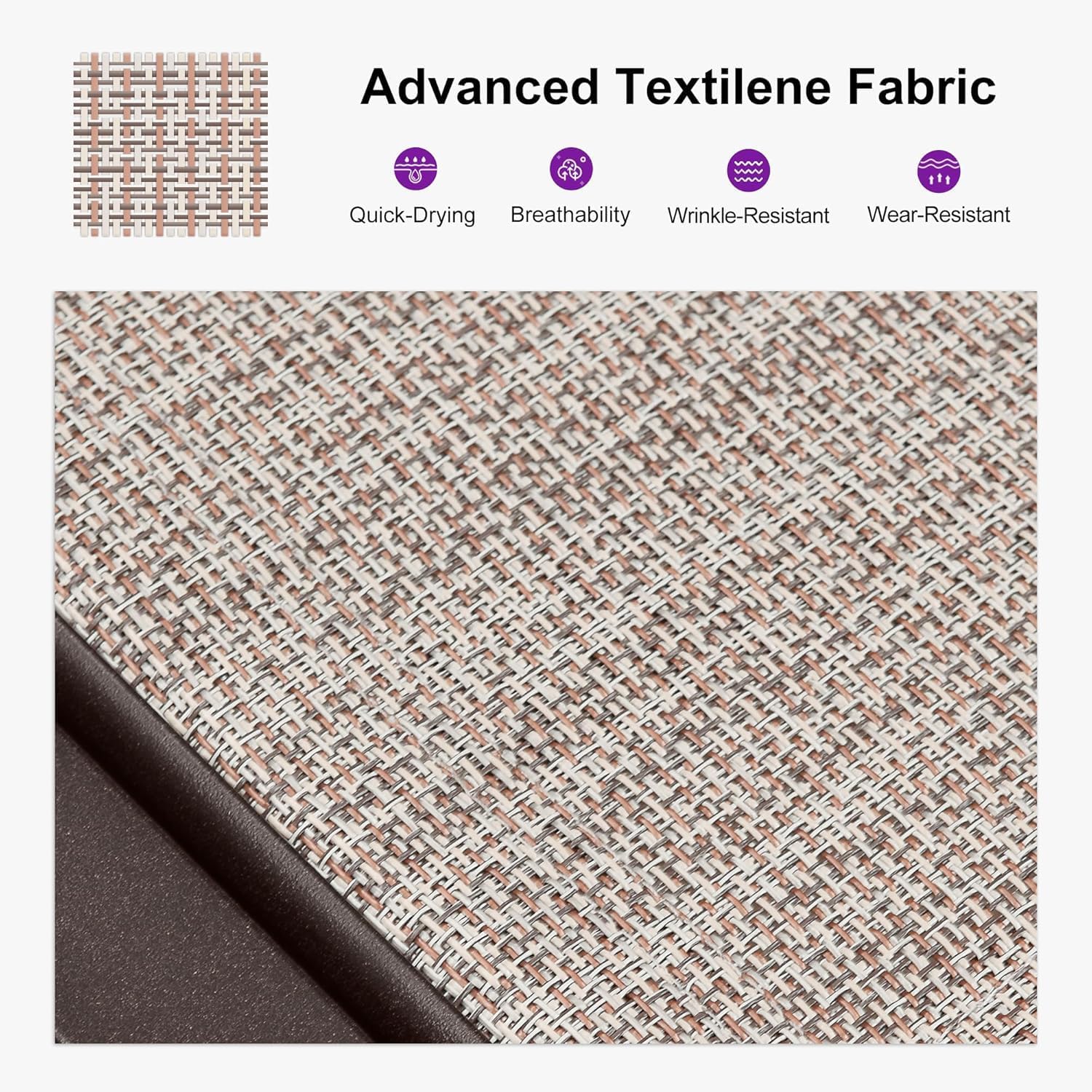 - COMFORTABLE FABRIC: This patio lounge chairs feature a sunbathing textilene design, providing a comfortable and relaxing lounging experience. Quick-dry and fade-resistant, perfect for poolside or patio use.