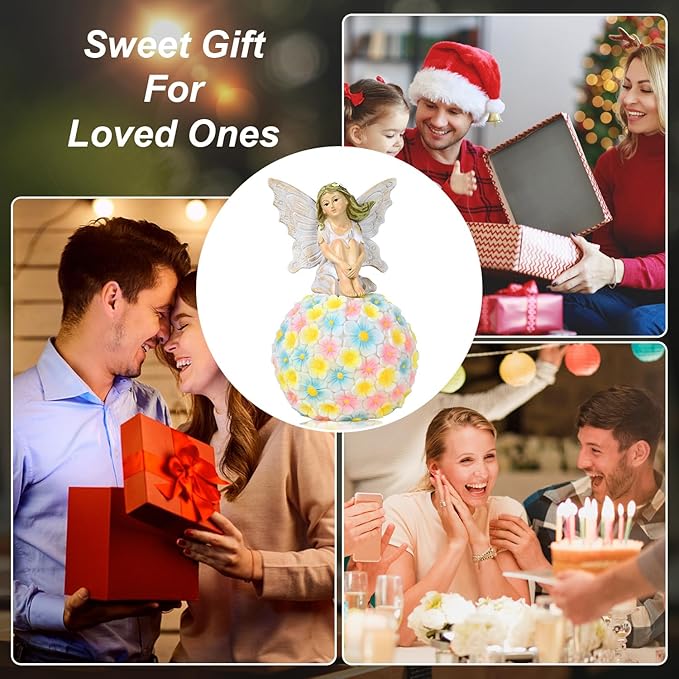 - 【WEATHER-RESISTANT DESIGN】This garden fairy statue is made from durable resin for long-lasting use.Hand-painted with vibrant colors and finished with a UV resistant coating. Able withstand all types of weather conditions including heavy rain and snow,resistant to fading, not easy to crack, waterproof ,keep your statue looking brilliant
