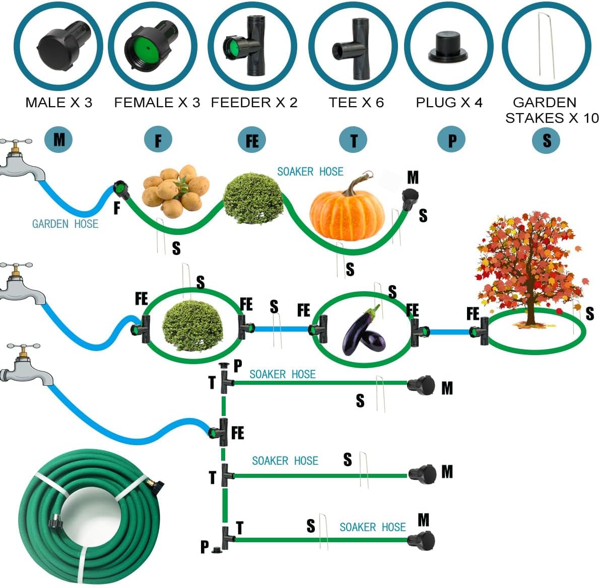 - DIY IRRIGATION SYSTEM -3/8 rubber hose with 100Feet length is great for small and medium sized gardens.You can customized any length you need such various lengths such as 75 feet, 50 feet, 25 feet,and connect with our package soaker hose fittings. This irrigation hose can easily connect multiple hoses for extended coverage garden watering system.
