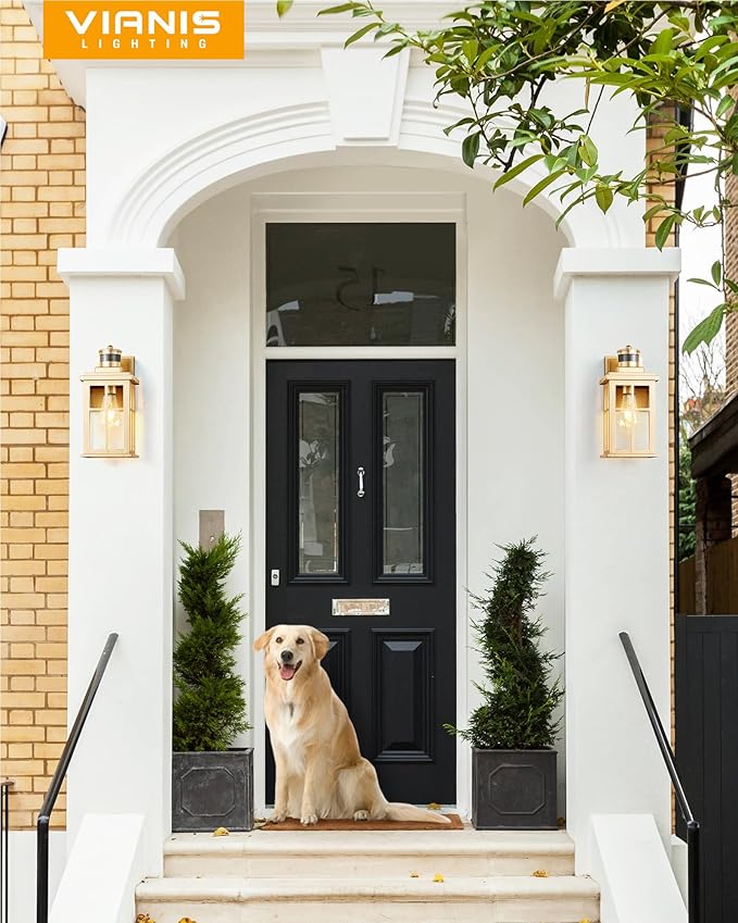 - 【Unique Look & Wide Applications】Elevate your outdoor area with our unique Gold front porch light, perfectly complementing your home’s style. Featuring clear tempered glass, it creates a stunning ambiance with its bright illumination. Ideal for adding a touch of low-key luxury, this carriage lantern is perfect for enhancing any outdoor space. Rust-resistant and durable, it maintains its pristine condition for years, making it suitable for gardens, porches, backyards, garages, and more.