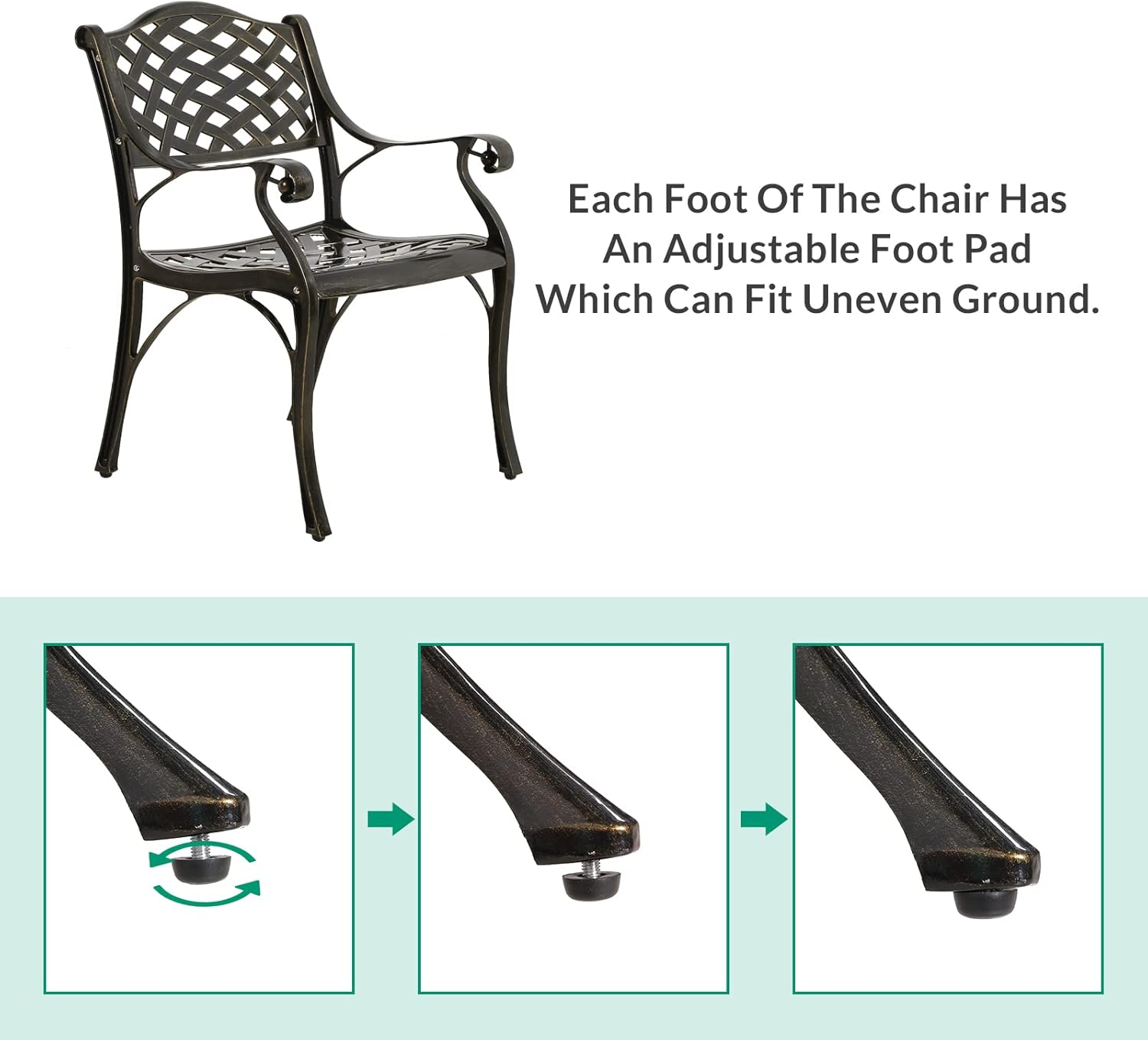 - 【STURDY & DURABLE】 The furniture table and chairs are made of sturdy and durable cast aluminum that is rust-resistant, for years of outside use. The surface is finely coated with smooth and waterproof covering, making it very easy to clean. Slanted legs serve wider base with better stability.