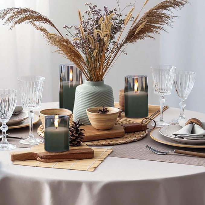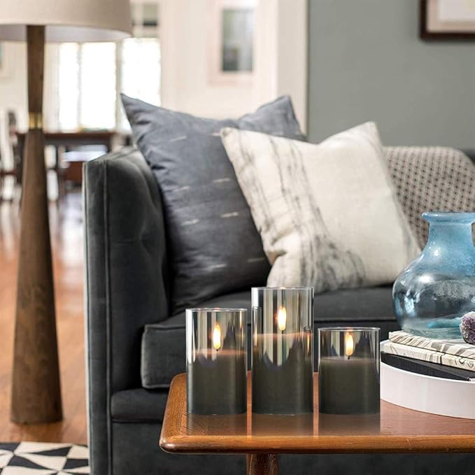 Glass Rechargeable Flameless Candles with Remote Timer, Realistic 3D Wick LED Battery Operated Candles with Flickering Flame,Home Decoration for Wedding Birthday Festival(Grey)