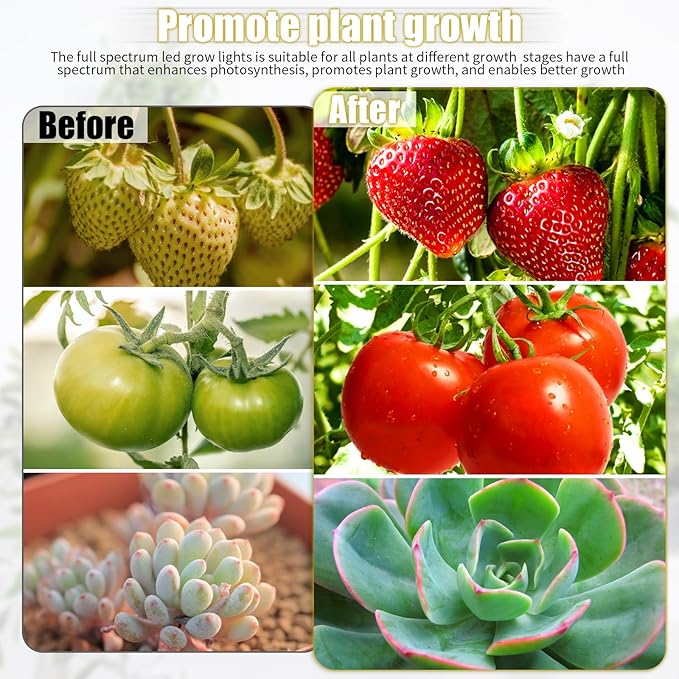 - 【Timing Function】 : Grow lights have cyclic memory timing function, the product will automatically open and close, you can set 3 hours, 6 hours, 12 hours, do not need manual operation, can take better care of the plant.