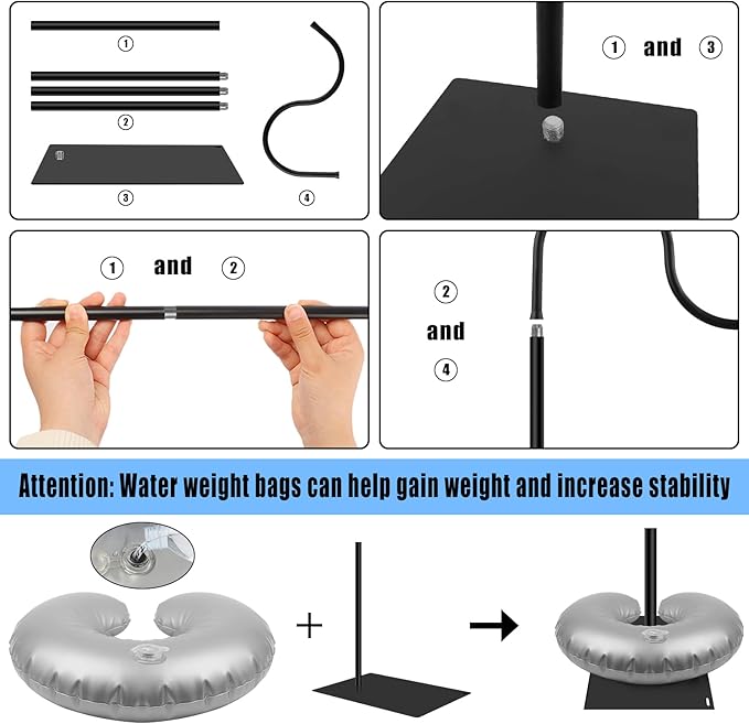 - 【Matching of The Water Weight Bag】: Considering the complexity of the outdoor environment, there may be problems with ground unequal on the ground. We have paired with the water weight bag. You can fill it up and put it on the base to ensure where it stands steadily. Will not shake at will