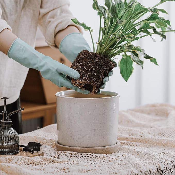 - 8-inch Plant Pot: The plant pot has an outer diameter of 7.9 inches, an inner diameter of 7.4 inches, and is 7 inches high, suitable for indoor or outdoor plants. Can be placed in the living room, bedroom, entrance, porch, corridor, balcony or windowsill