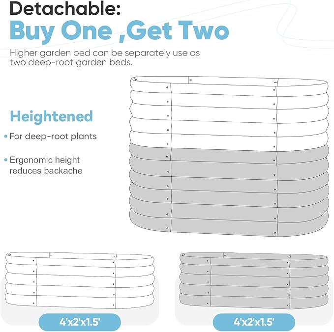 - 【32-Inch Height & Comfortable Gardening Companion】Say goodbye to backaches from gardening! Our 32-inch tall raised planter box provides ample space for root growth, ideal for planting deep-root vegetables and fruits like potatoes, carrots, and beets. It's extremely user-friendly for people with back discomfort, the elderly, and wheelchair users. Additionally, this height helps protect your crops from small animals.