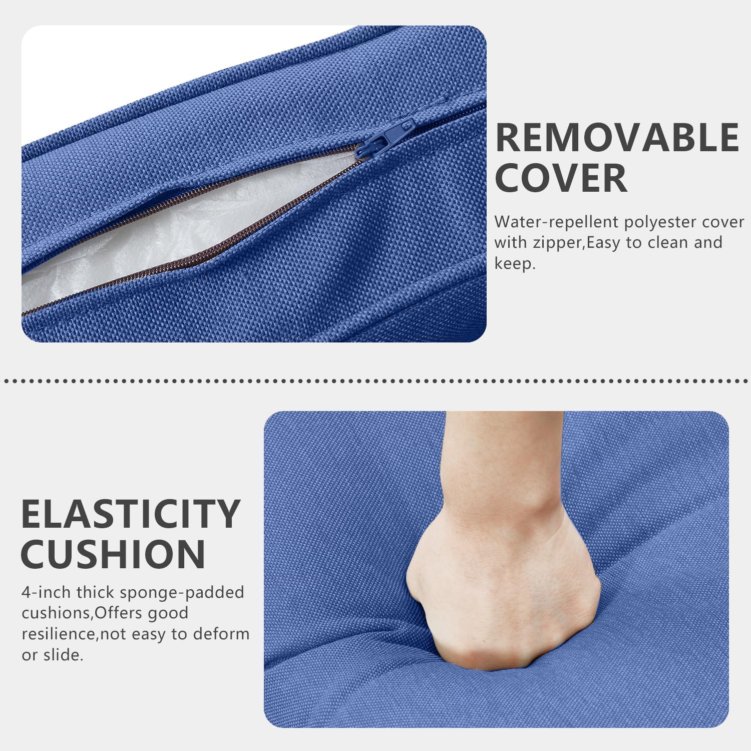 - 【Comfortable 4'' Thick Cushions】This garden furniture set features deep and wide seats with 4-inch thick sponge-padded cushions.Offers good resilience, not easy to deform or slide, also protect your lumbar and offer a comfortable sitting experience.Water-repellent polyester cover with zipper,Easy to clean and keep.