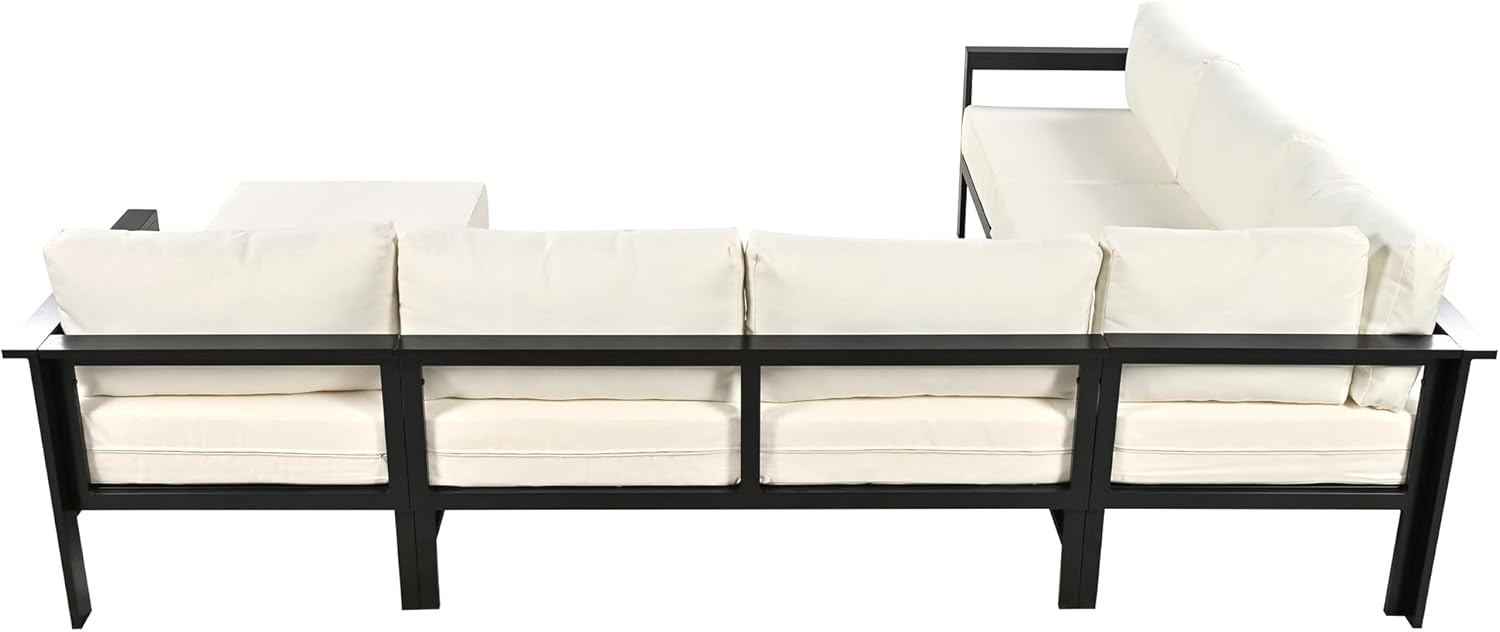 - 🌈[Outdoor Patio Sofa Set] - Modular instructure sofa ensembles with a sectional configuration comprising of 2 loveseats, 1 armless seat, 1 corner seat, tailor-made for luxurious outdoor relaxation.You can create the perfect outdoor living space, no matter the size or layout of your yard.The entire patio sofa set is skillfully structured with lightweight, weather-resistant aluminum frames that ensure longevity and dependable coverage against the elements.
