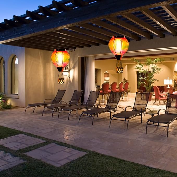 - 【Weather Resistance】Glass hot air balloon solar light is 18.1"H. Outdoor hot air balloon solar flickering flame lights are mainly made of textured stained glass and high qualty metal. Hot air balloon solar lamp is waterproof and not easy to fade, suitable for many kinds of weather.