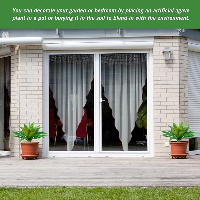 - About The Large Fake Plants Color: natural green, replica of the real agave color, delicate and durable, outdoor sun protection.Low Maintenance Unlike real plants, these artificial agave planters require no watering, pruning, or fertilizing. faux succulent outdoor plant enjoy the beauty of greenery without the hassle of maintenance.