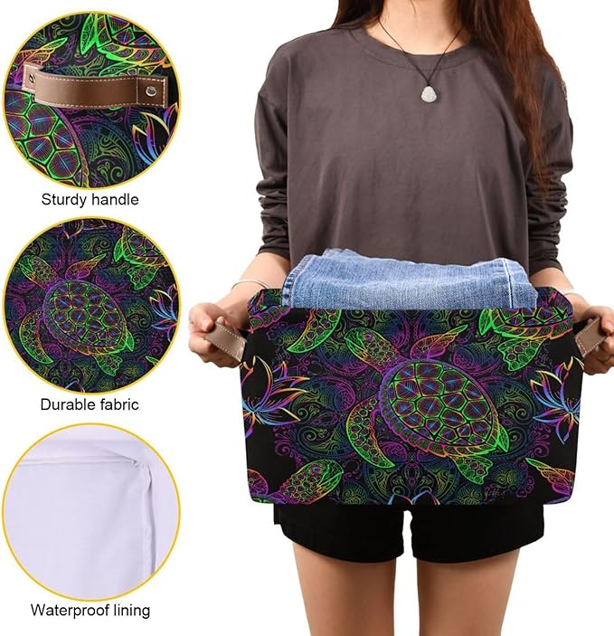 Rectangular Storage Basket Neon Animal Turtle Tortoise Organizer Bin Shelf Baskets For Clothes For Home Office Dorm