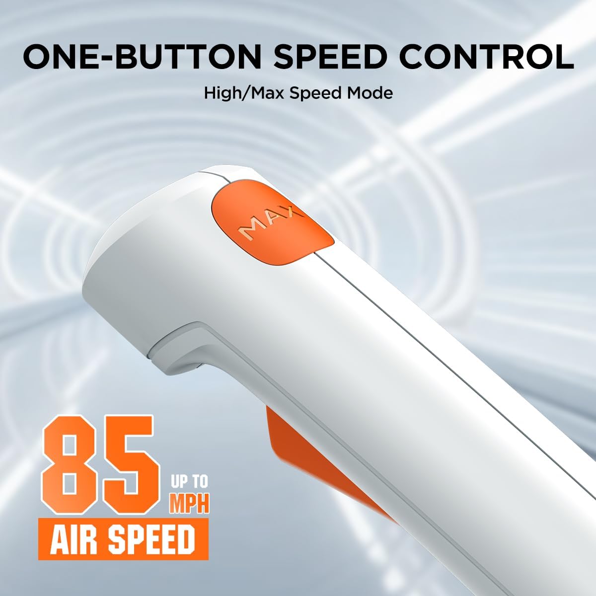 - 【Strong cleaning performance】 The cordless blower has an air speed of 85MPH and an air flow of 355CFM. The fan can generate a powerful airflow to remove dry and wet leaves, grass clippings, etc. from the ground or to dry your car quickly without having to bend down.
