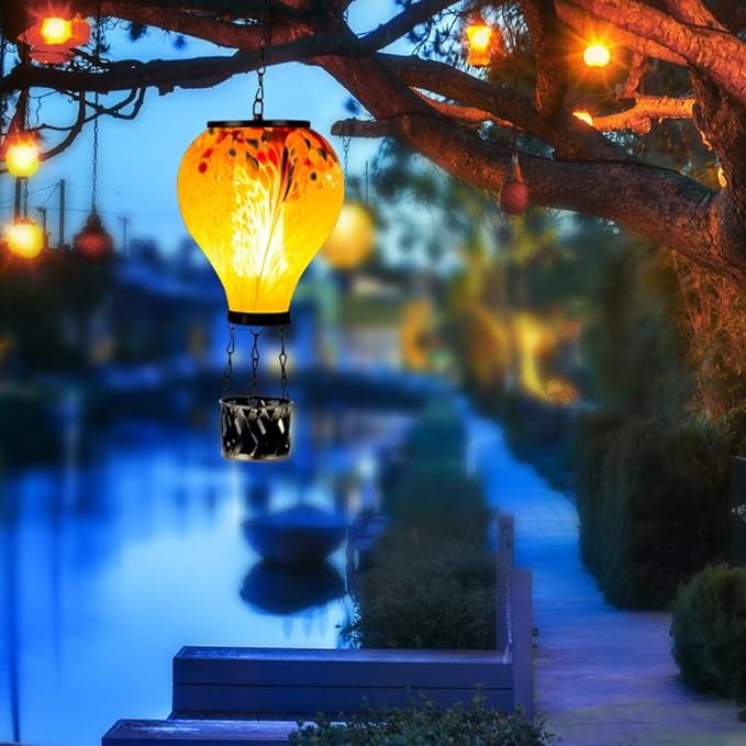 - 【Ideal Giift Choice】The hot air balloon solar lantern with flickering flame light is an ideal giift for your family and friends on birthdays, holidays, weddings, Valentine's Day, Mother's Day, or housewarmings.