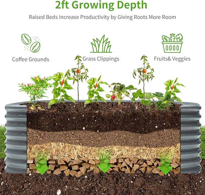 Land Guard 24“ Tall 4×2ft Galvanized Raised Garden Bed Kit, Galvanized Planter Garden Boxes Outdoor, Oval Large Metal Raised Garden Bed for Vegetables(Modern Gray, 4×2×2ft)