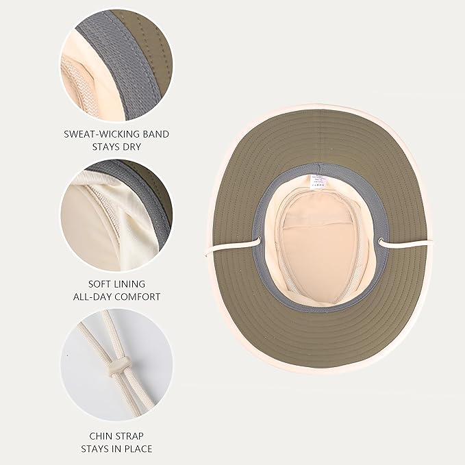 • Wide-Brim Safari Sun Hat – Classic boonie-style bucket hat offering full-coverage sun protection for fishing, hiking, running, camping and travel.