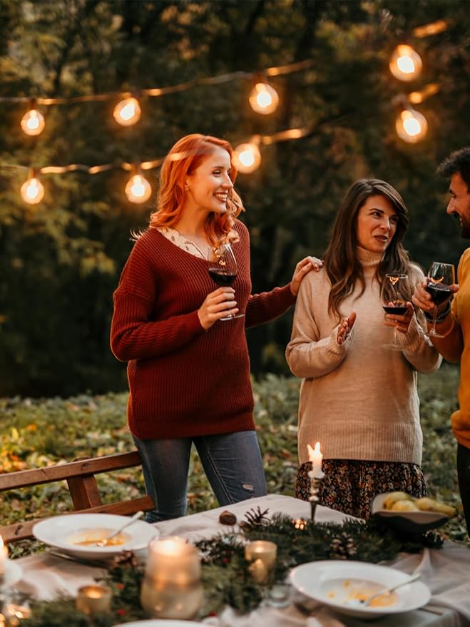 - [Shatterproof & Waterproof LED String Lights] These outdoor string lights with LED globe bulbs will turn your backyard, patio, and favorite spaces into a warm getaway. The bulbs are highly shatter-resistant, giving you peace of mind in whatever conditions you use them.Waterproof outdoor lighting can withstand extreme temperatures,rain,wind and humidity.Dress these lights up with fabric, flowers, or greenery for a celebration, or simply string them across your backyard for a warm ambiance.