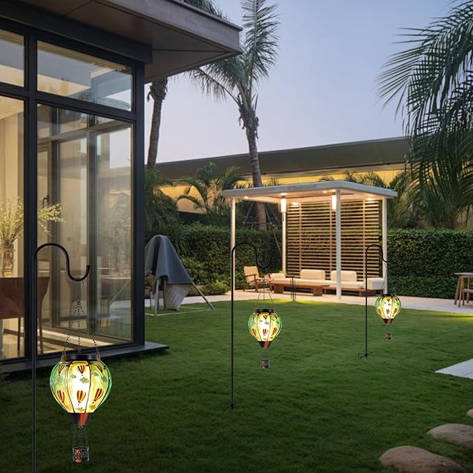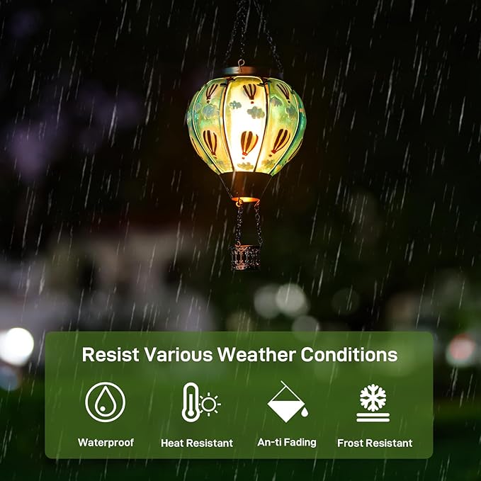 - 【Solar-Powered】Outdoor solar lanterns absorb sunlight during the day and automatically light up at night, providing 6-8 hours of lighting. The soft and warm light of hot air balloon solar lantern creates a romantic and peaceful atmosphere for the outdoor space.