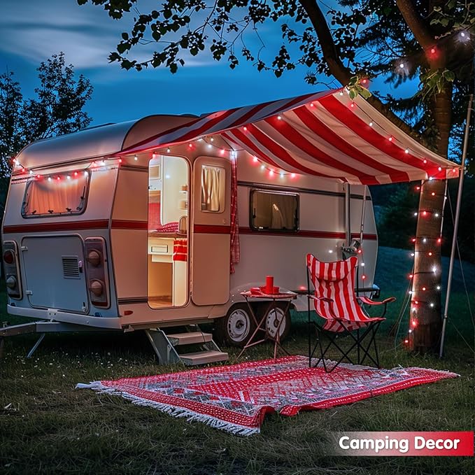 JMEXSUSS 2 Pack Red and White Christmas Lights, Each 100 LED 33ft Solar String Lights Outdoor Waterproof, 8 Modes Green Wire Solar Lights for Outside Tree Garden Patio Party Decoration