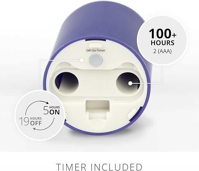 - Powered by 2 AAA batteries (not included), each candle offers 100 hours of safe and long-lasting illumination. Set the timer for 5 hours of brilliance, followed by an automatic 19-hour shutdown.