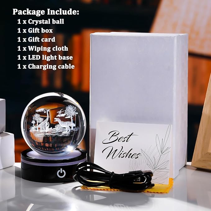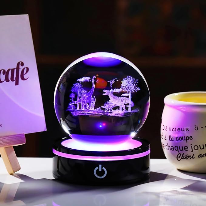 - Gift Box Packaging: The packaging includes a crystal dinosaur ball, LED base, USB cable, gift box, gift card, and wiping cloth. Crystal night light creates a comfortable light, suitable for placing on a table, bedside table, dining table, party, cafe, etc.
