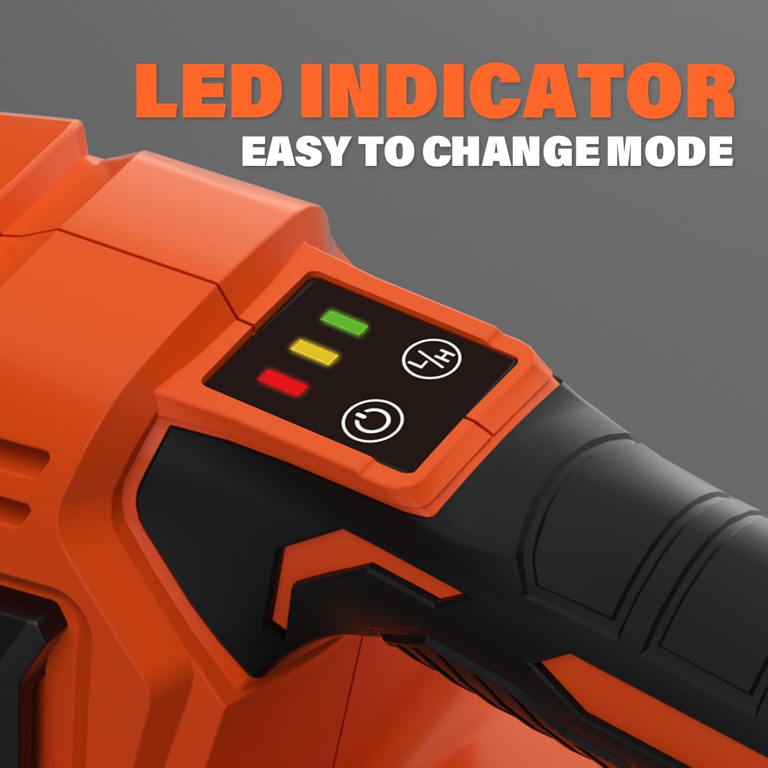 - [ULTRA-LIGHTWEIGHT & ERGONOMIC DESIGN] The leaf blower weighs only 3.4 pounds (including the battery), and the bare tool weighs only 2.4 pounds, which can be easily lifted with one hand; moreover, the handle of the electric leaf blower is wrapped with soft rubber, which is non-slip and comfortable.