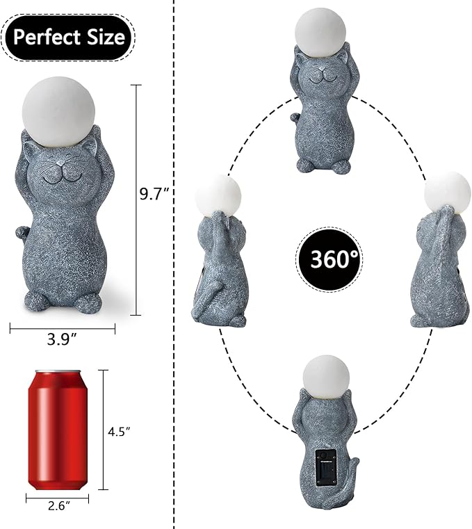 - Add vitality to your outdoor space - This outdoor decor light adopts exquisite artistic design, is not only a great art, but also a practical lighting tool. The image of the cat is cleverly integrated into the lamp, whether as a garden decoration or night lighting, both can create a magical and warm atmosphere